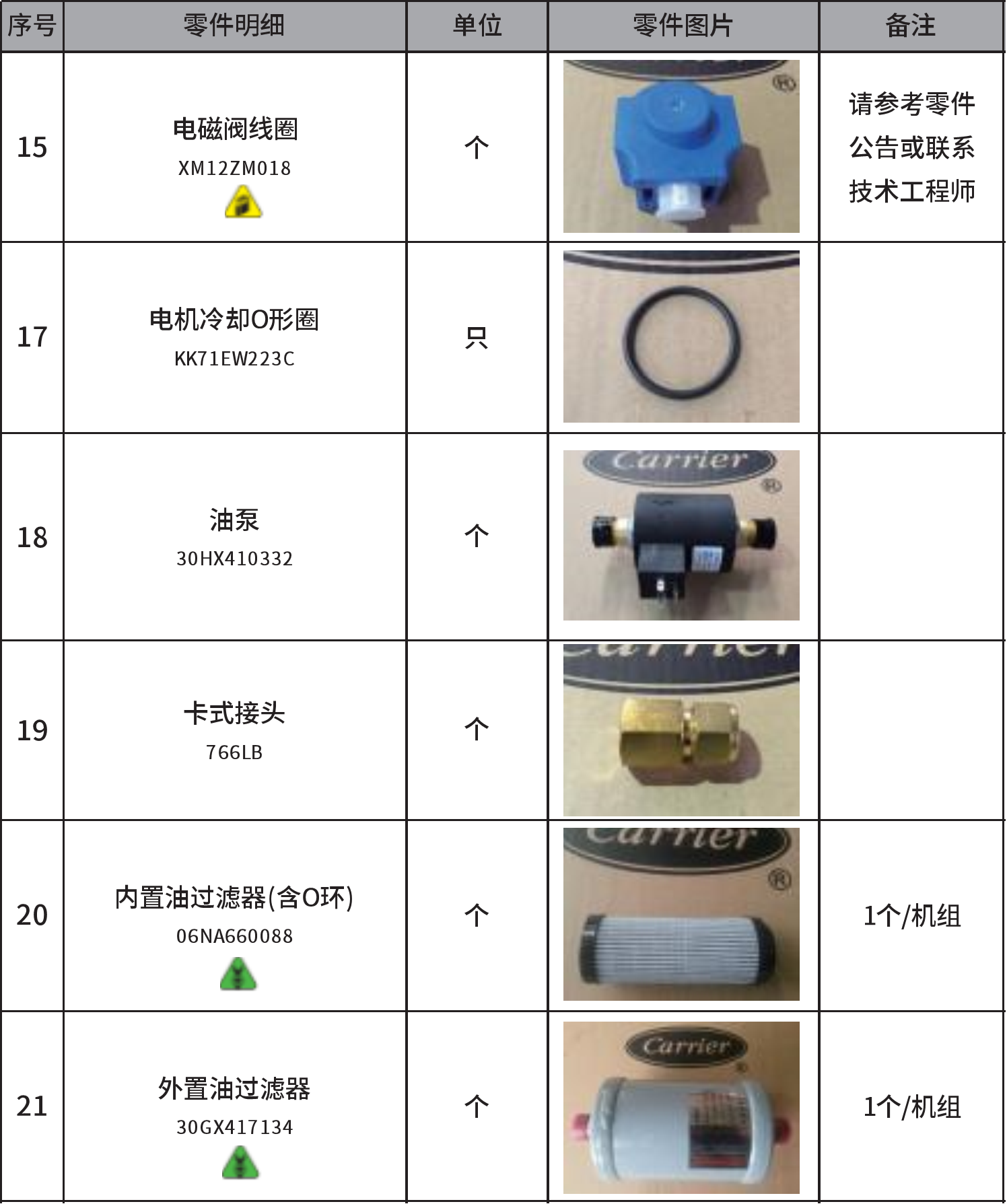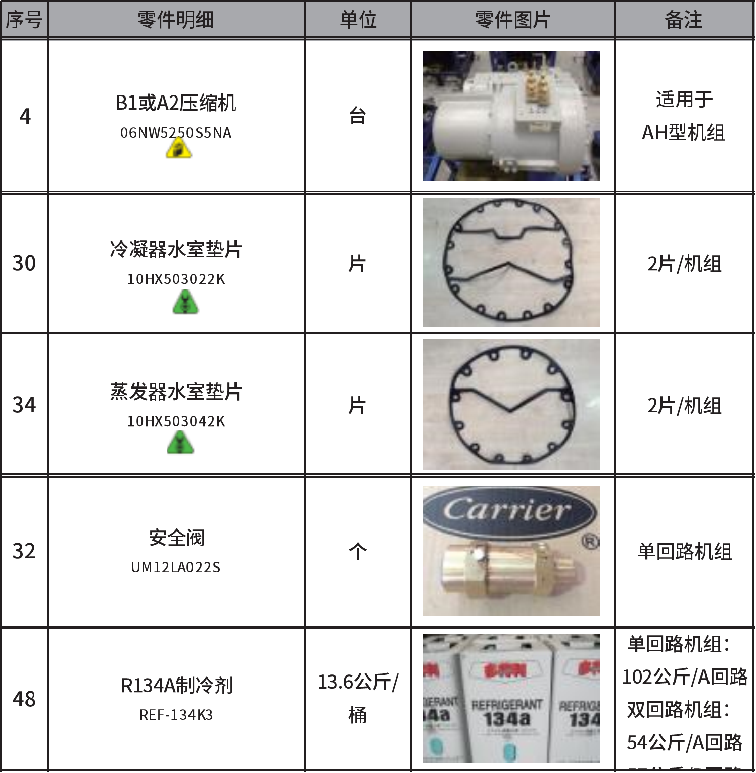 30HXC165 机组 常用零配件